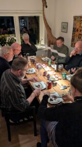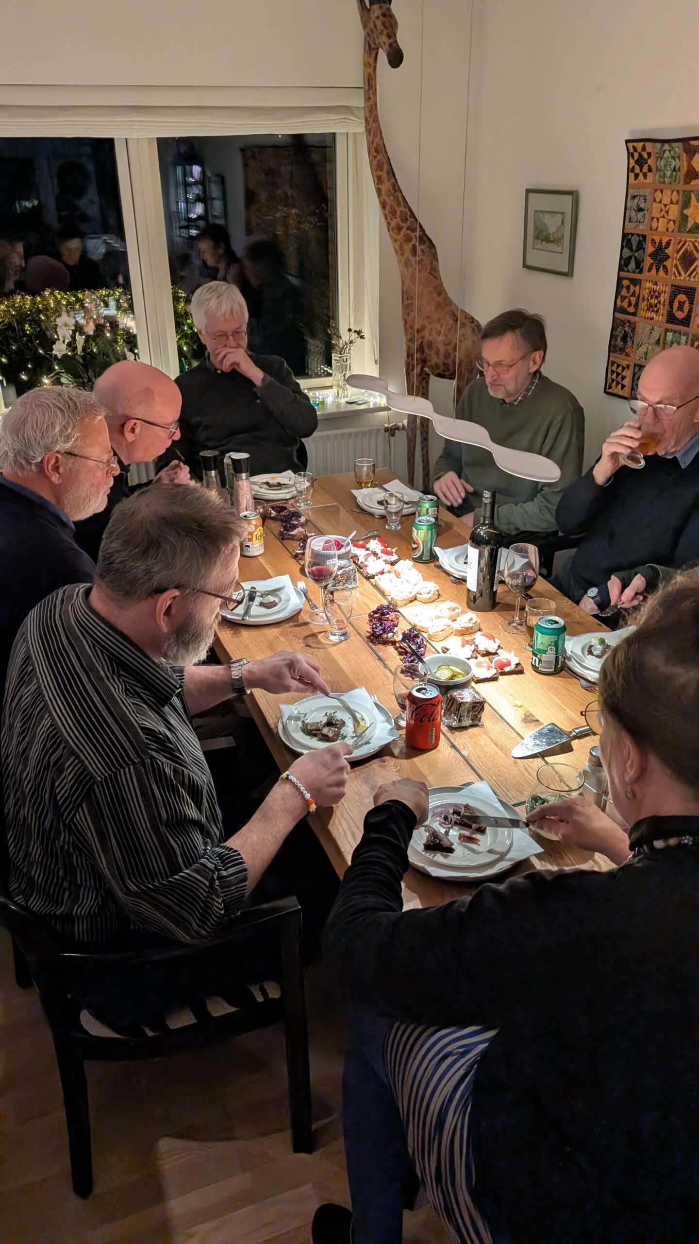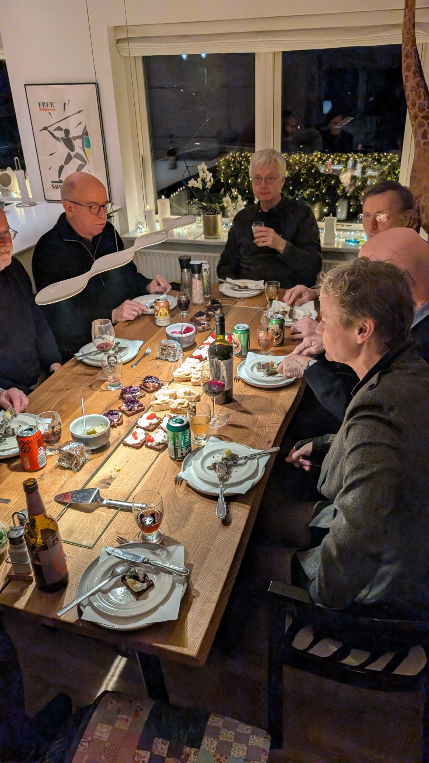 Året 2025 blev atter fejret med en hyggelig fest hos formanden med frue, der atter stod for en spændende menu. Priserne blev uddelt og der var livlig snak om bold og de sædvanlige politiske emner – i år inkl atomkraft.